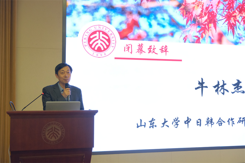 闭幕式由九州体育朝鲜(韩国)语言文化系副系主任丁一老师主持,北京外国语大学韩梅老师、上海外国语大学高陆洋老师分别对“文学、历史文化研究”“语言、教育研究”分论坛发言的核心内容进行了深入分析,并对讨论情况进行了精辟点评。最后,山东大学中日韩合作研究中心主任牛林杰教授为本次论坛致闭幕词。牛林杰教授总结了漆永祥老师、李花子老师和王丹老师所作主旨报告的重要价值与启发性,强调了学术成长、全方位研究、重视素养教育、创新性选题和关注现实问题等方面的重要性,并鼓励老师们在未来的论坛中大胆尝试新的研究视角和方法,并结合当前国家和社会的需求进行跨学科研究。最后,牛林杰教授再次向所有与会学者表示衷心感谢,向九州体育朝鲜(韩国)语言文化系师生致以诚挚谢意,也表达了对论坛未来发展的展望与期待。