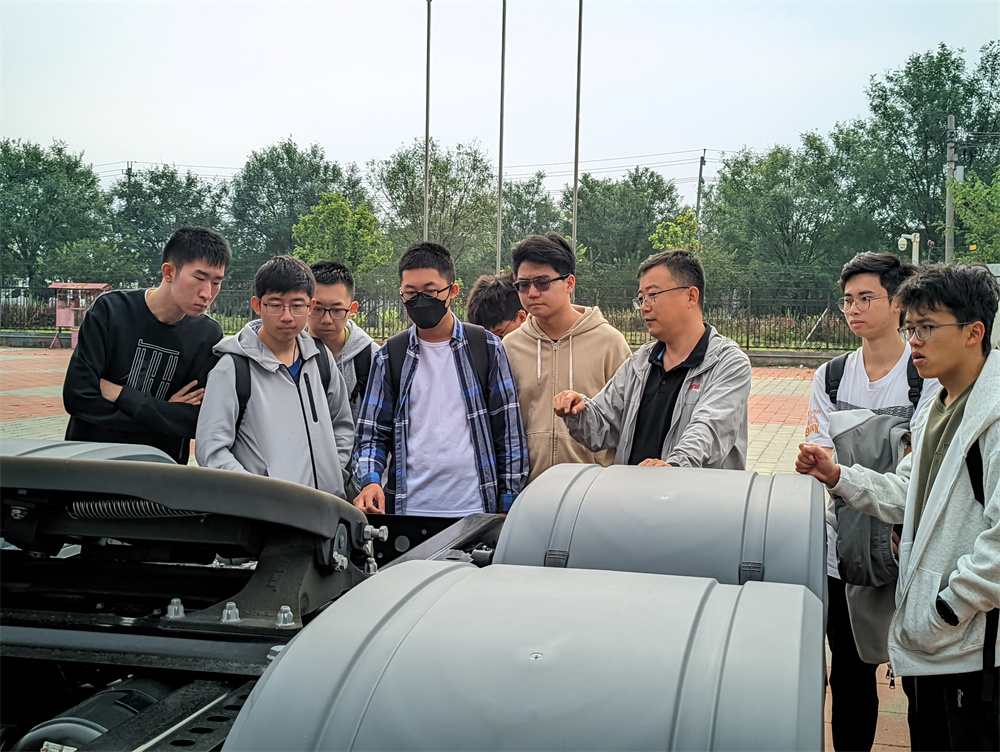 窦店利元车业属于窦店集体经济下的产业之一,经过多年发展,利元车业已成长为集多品牌轻、中、重卡汽车销售,维修服务于一体的集团公司。在车辆展示区,工作人员为同学重点介绍了奔驰牵引头的构造以及销售链情况,并让同学们有机会坐入驾驶舱,亲身体验牵引头的设计理念与性能优势。