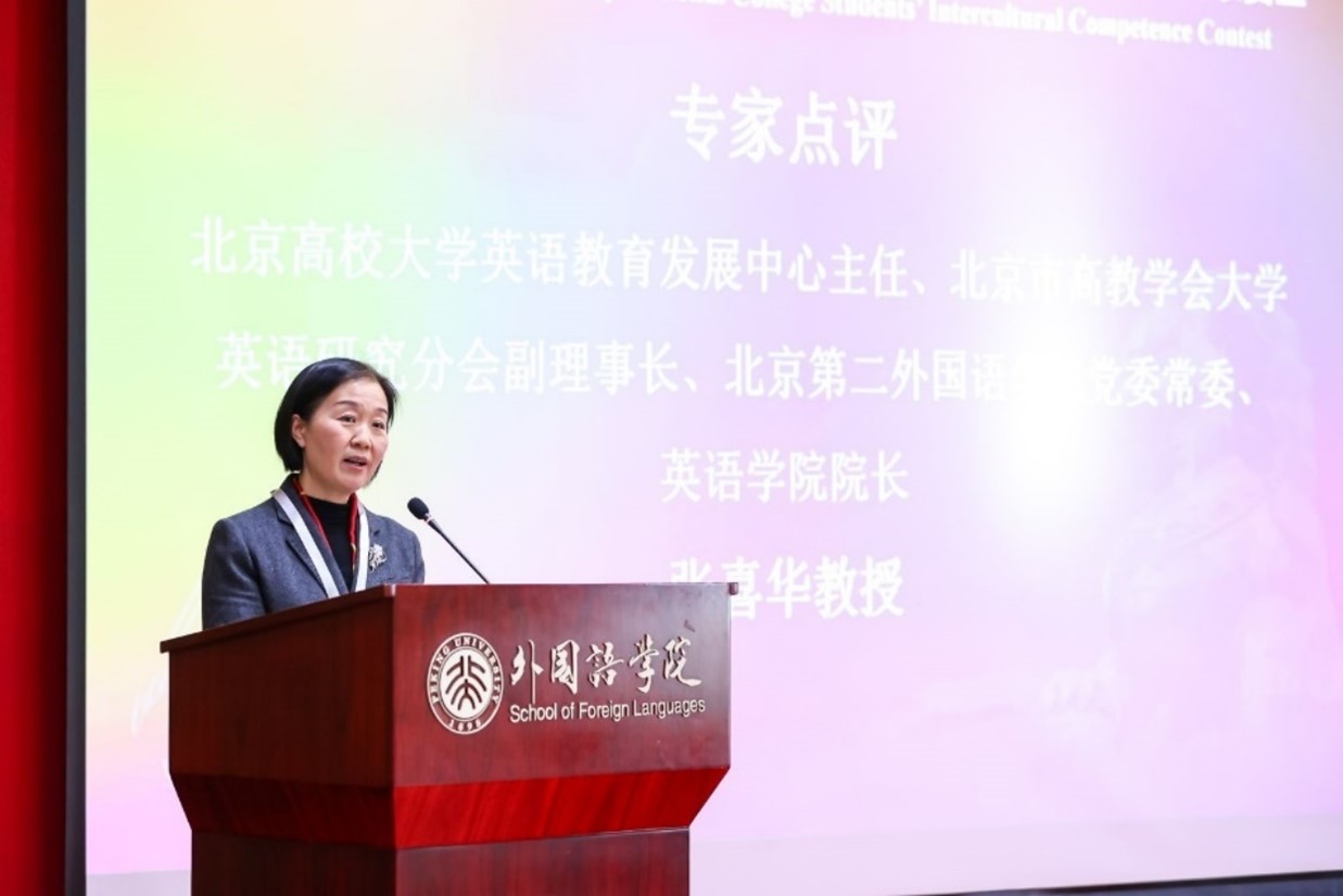 北京高校大学英语教育发展中心主任、北京第二外国语学院英语学院院长张喜华教授和丹麦哥本哈根大学跨文化系主任Ingolf Thuesen教授分别代表评委专家做点评。