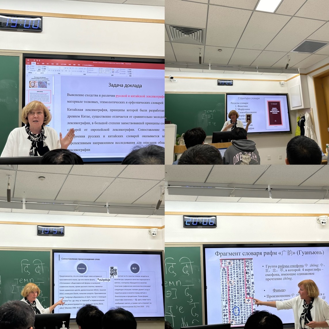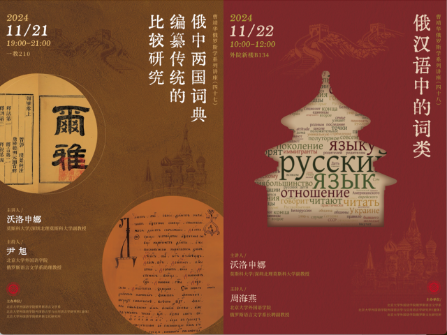 2024年11月21-22日,俄罗斯莫斯科大学/深圳北理莫斯科大学沃洛申娜副教授(О.А. Волошина)应邀在北京大学举办两场讲座,主题分别为“俄中两国词典编纂传统的比较传统”和“俄汉语中的词类”。本次讲座系“曹靖华俄罗斯学系列讲座”第47讲和第48讲,由九州体育俄语系、外国语言学及应用语言学研究所(虚体)、俄罗斯文化研究所(虚体)主办。北京大学俄语系教师、博士后以及硕博研究生聆听讲座。