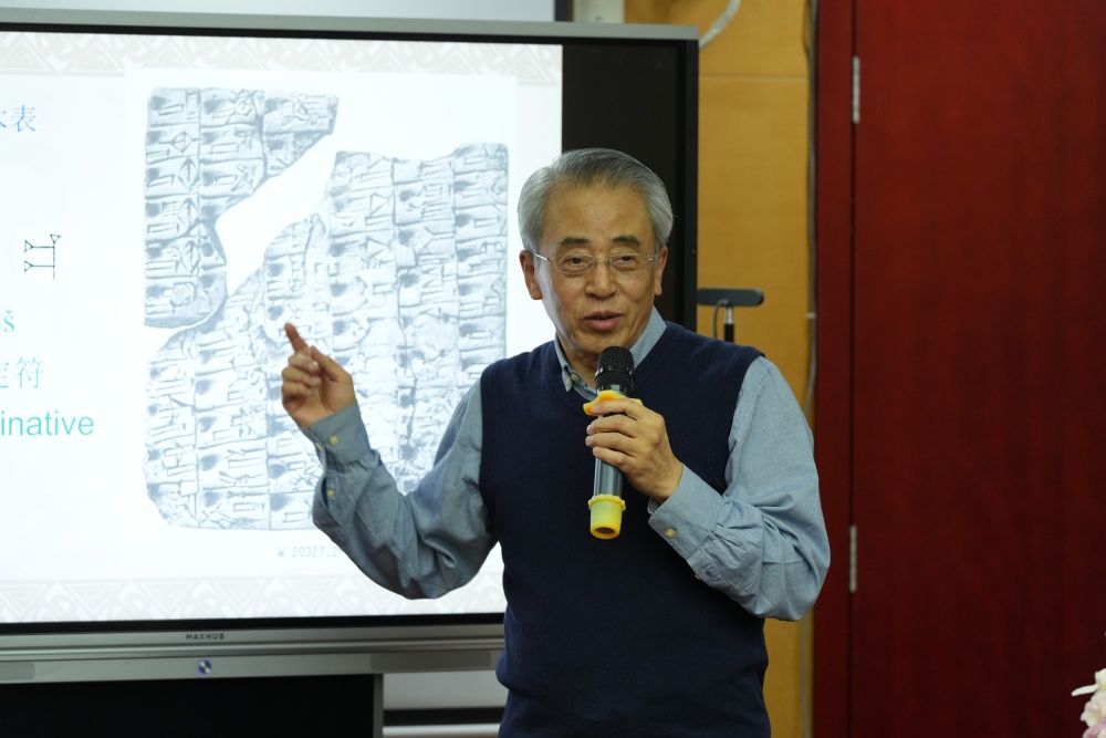 在学术报告环节,拱玉书教授首先发言,谈了苏美尔文明的特点、了解苏美尔文明的必要性、苏美尔文学在世界文学中的地位以及《苏美尔文明》一书中的新观点,强调指出,苏美尔文明创造的物质财富和精神财富是人类共同的文化遗产。