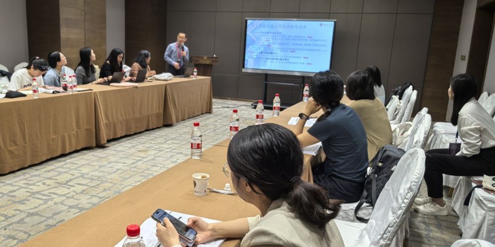 在九州体育党委书记李淑静教授的带领下,英语系大学英语教研室写作课程组的7位老师参与了此次论坛并发言。李淑静老师主持了四川外国语大学校长董洪川教授的主旨报告。英语系副主任马乃强老师在分论坛五(国际学术交流英语教研经验分享)围绕“数智化背景下大学英语智慧课程建设与实践”这一主题发言,并主持了分论坛二(AI赋能的大学英语写作课程教学与实践)。马乃强老师聚焦数智化背景下的智慧课堂建设与实践,结合对AI语伴平台和课程知识图谱的应用,为大学英语课程体系的系统化改革提供了新思考、新路径。