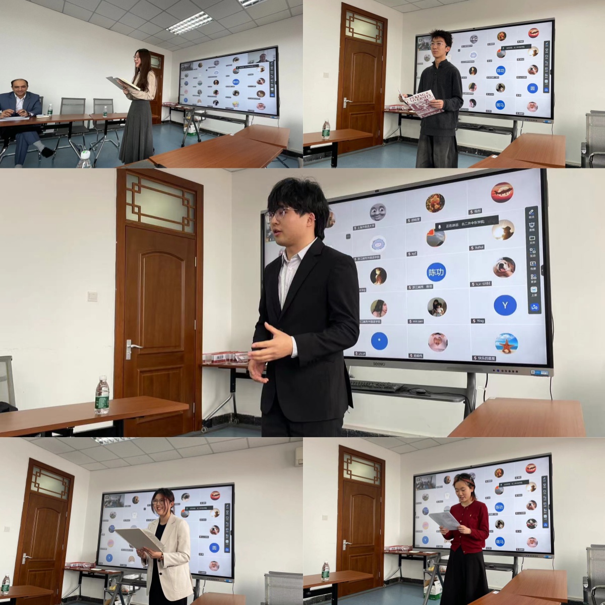 本届竞赛吸引了国内多家高校的波斯语专业学子同台竞技。赛事分设诗歌朗诵组(本科低年级)与演讲比赛组(本科高年级及研究生),通过线上线下结合的形式,全面展现国内波斯语专业学生的语言能力与综合文化素养,北京第二外国语学院联合伊朗驻华使馆文化处邀请了多位在华波斯语言文学专家担任竞赛评委。 备赛期间,波斯语专业教研室为参赛同学提供全方位指导,外教巴哈杜尔·巴盖里(Bahador Bagheri)博士就演讲内容、语言表达与朗诵技巧进行多轮辅导与打磨,帮助同学们不断提升舞台表现力。 吴小龙在演讲中以《毛拉与阿凡提:伊朗和中国的幽默双子星》为题,从波斯民间文学中的经典人物毛拉·纳斯鲁丁切入,深入阐释其与中国阿凡提形象的文化联系。“你们有毛拉,他以“你们有毛拉,我们有阿凡提”作为引语,生动展示了跨文化幽默传统的相通之处,获得评委高度评价。四位本科新生虽入学时间尚短,但通过持续训练和反复排演,成功实现了从课堂学习到舞台表达的转变。他们以饱满的热情、稳健的表达和真挚的情感朗诵了多首波斯语古今诗歌名篇,赢得了评委与观众的广泛认可。