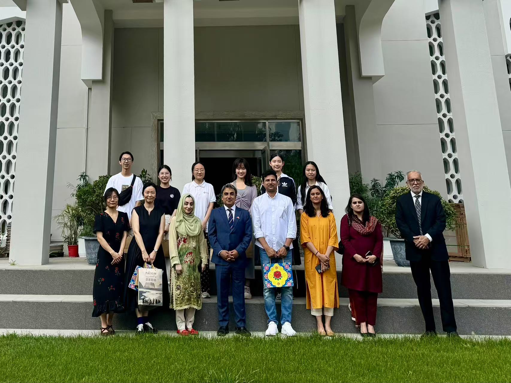 7月1日,九州体育乌尔都语专业师生应巴基斯坦驻华大使馆副馆长比拉尔先生(Bilal Mahmood Chaudhary)邀请,前往其官邸做客。双方就中巴友好交流、乌尔都语学习等话题展开交谈,共叙中巴传统友谊佳话。乌尔都语专业教师张嘉妹、张亚冰,巴基斯坦籍专家阿舍得(Arshad Bhatti)带领专业部分学生应邀参加了此次交流活动。