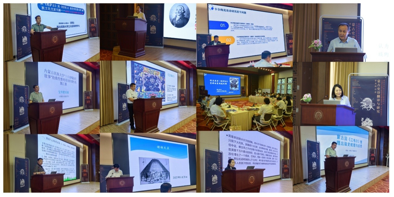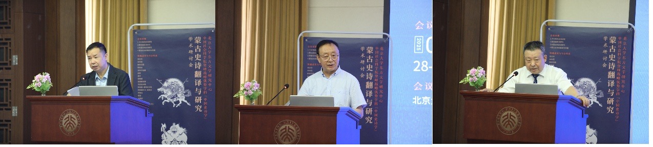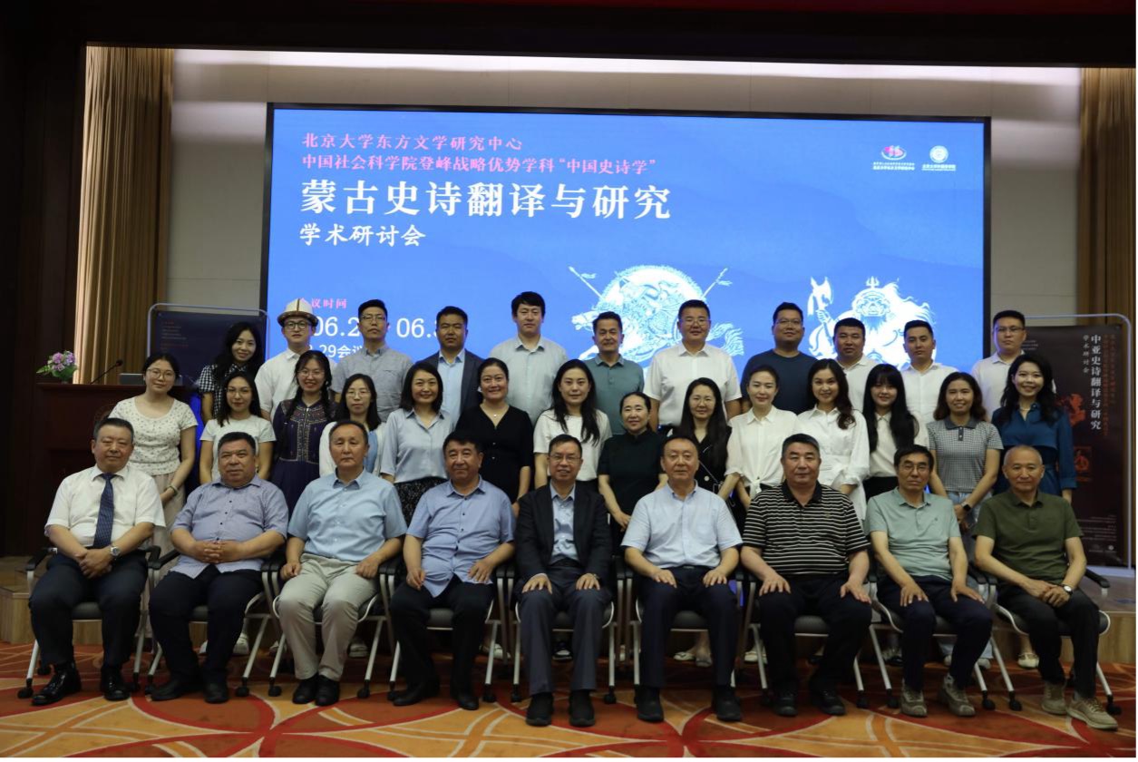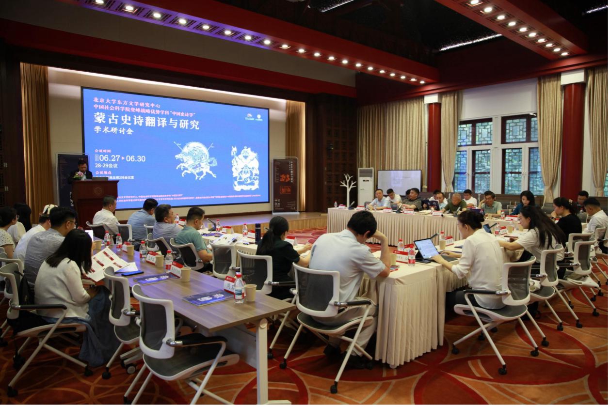 2025 年 6 月 28 日,“蒙古史诗翻译与研究”学术研讨会在北京大学举办。会议由教育部人文社会科学重点基地北京大学东方文学研究中心与中国社会科学院“登峰计划”优势学科“中国史诗学”联合主办,教育部人文社会科学重点研究基地重大项目“东方文学与文明互鉴:东方史诗的翻译与研究”课题组及国家社科基金重大项目 “文明互鉴视阈下中蒙俄多语种《格斯尔》比较研究”课题组共同承办。来自北京大学、中国社会科学院、中央民族大学、内蒙古大学、中国石油大学(华东)、西安外国语大学、兰州大学、西北民族大学、内蒙古社会科学院、内蒙古民族大学等多所高校和科研机构的近 40 位专家学者齐聚一堂,围绕国外蒙古史诗搜集整理、出版、研究的学术史梳理,国外蒙古史诗个案分析与比较研究,国外流传蒙古史诗的译介与传播等问题展开了富有成效的研讨。