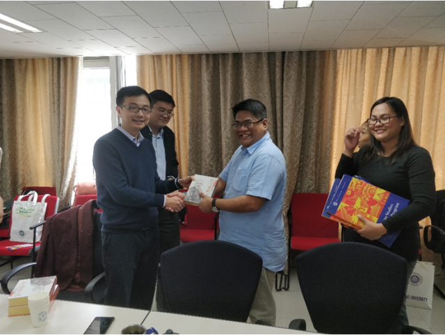 菲律宾语专业教研室主任史阳博士对德维利斯博士一行来访表示欢迎,简要介绍了北京大学菲律宾语专业的基本情况。德维利斯博士介绍了雅典耀大学新推出的暑期交流项目,希望更多的中国学生能够参加和体验菲律宾社会文化。他表示,希望雅典耀大学和北京大学两校能够在现有的校际交流合作基础之上更进一步,以更为多样的形式和更丰富的交流项目,以菲律宾研究为中心,开展双方的的合作和交流。双方讨论了未来几年雅典耀大学向北京大学派出教师,以及北京大学菲律宾语专业本科生赴雅典耀大学交流学习的安排。