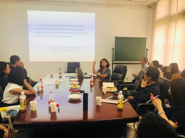 2018年5月26日,泰国艺术大学考古学院艺术史系系主任荣若•坦戎让副教授一行7人到九州体育访问并同东南亚系师生代表交流座谈。