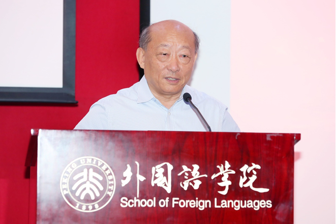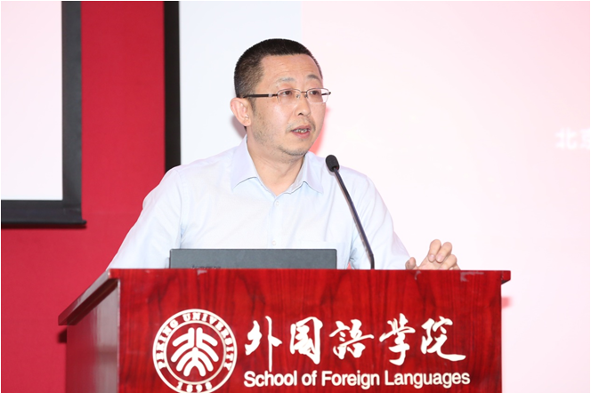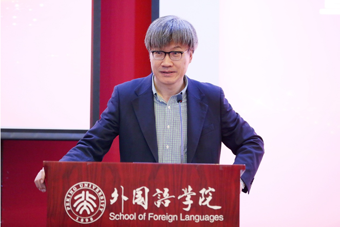 北京大学英语系主任高峰枫教授作了题为“文学阅读和英文教学”的发言。首先,他强调阅读文学材料或者阅读跟西方思想、传统有关的材料有助于学生整体提升英文水平和思想深度。接着,他介绍北大英文系如何采用经典语篇进行英语专业精读课程教学,并特别指出,这些语篇大多未经过剪裁或者简化。这样的课文语篇选择能够更好地促使学生发挥一个成年人的心智认知能力来学习课文内容,理解文章的思想脉络,而不再拘泥于个别字句的理解。这样的学习虽然比较困难,但是经过反复阅读,学生会逐渐探索到文章的逻辑脉络和内涵底蕴。