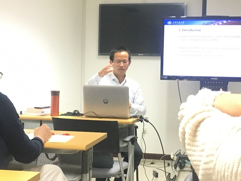 2018年11月23日,上海交通大学杨炳钧教授来九州体育做语言学沙龙。杨教授的题目为《关于概念语法隐喻的完全体现原则:以名词化为例》(Full realization principle for the identification of ideational grammatical metaphor: nominalization as an example)。本次讲座由语言所副所长高彦梅老师主持。来自语言所和北京其他院校的硕博士研究生和进修教师到场聆听讲座。