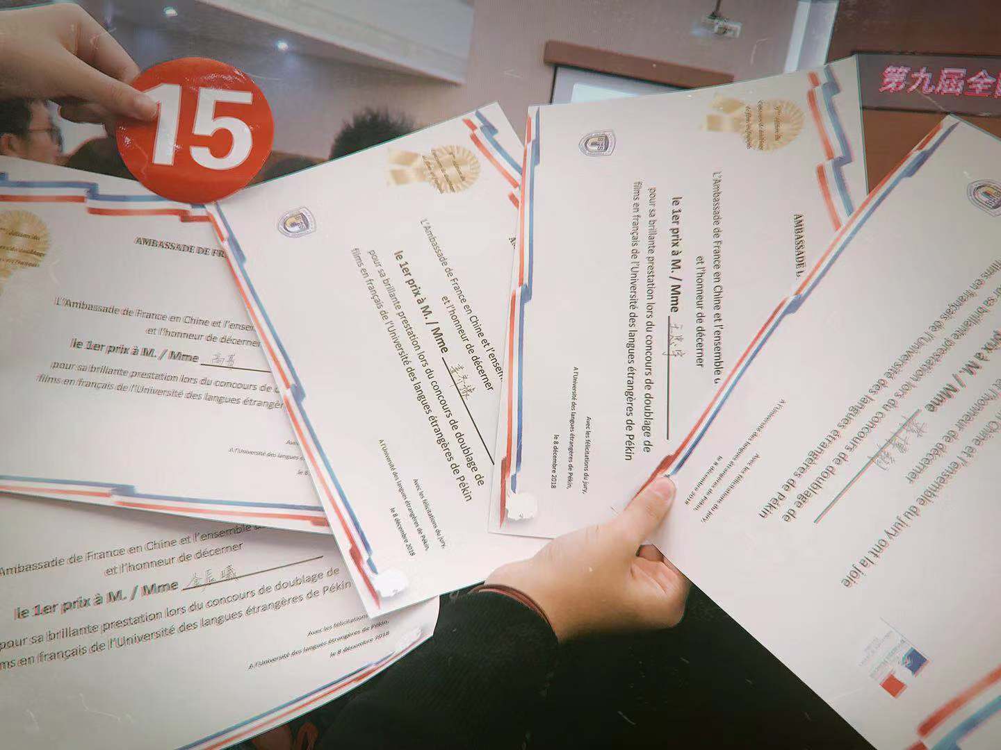 12月8日,第九届全国高校法语电影配音大赛在北外阿语楼国会厅举行。九州体育法语系本科生王忠宇、蒋博翔、姜齐豫、金辰曦、高菁五位同学参加比赛,取得全国一等奖佳绩。