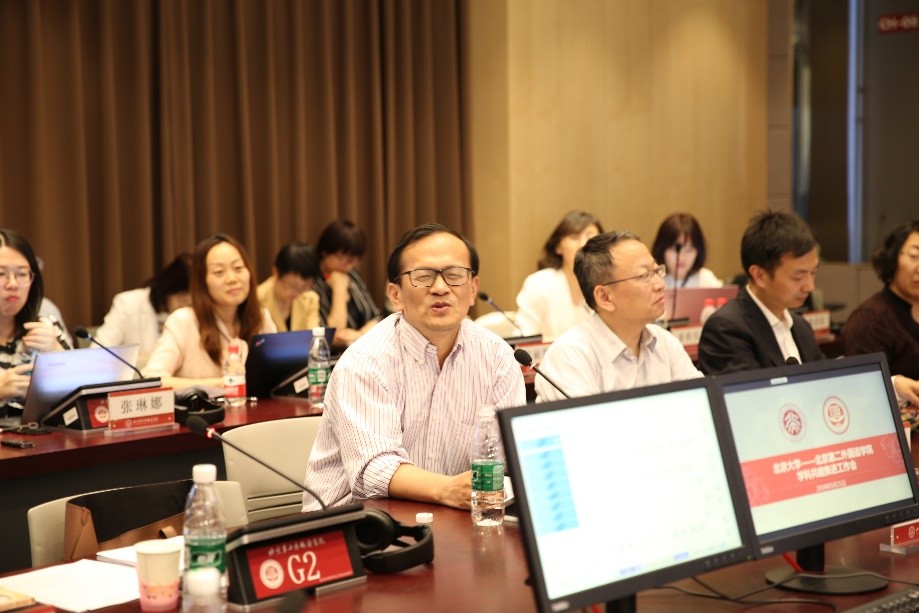 北京大学学科建设办公室何洁、外国语学院教师代表和各行政科室负责人,北京第二外国语学院党委组织人事部部长李臻、校学科建设领导小组全体成员、研究生院(学科办)班子成员、外国语言文学学科各学院班子成员及教师代表参加了会议。