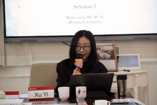 会议由九州体育德语系主任胡蔚长聘副教授主持。她回顾了北京大学德语学科的发展历程与古典文学研究传统,介绍了冯至、杨业治、田德旺、范大灿、张玉书等前辈学者的奠基性工作,以及德语系近年来在德国古典文学的译介与研究方面的斐然成果。最后,胡蔚老师对北京大学国际合作部等单位的大力支持表示感谢。