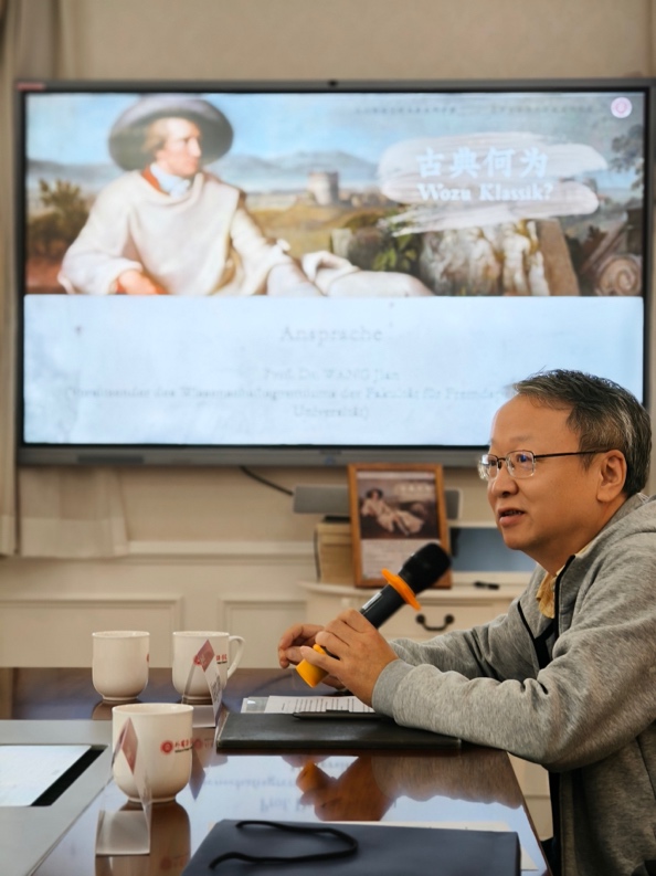 德国驻华使馆文化参赞杨念慈博士(Anna Janus)在致辞中回顾了北大德语系举办的一系列重要活动,以及对德中文化交流做出的积极贡献,并且强调,阅读与研究作为“常量”的文学经典,能够拓展视野、立足长远、汲取新的智慧。九州体育学术委员会主任、德语系王建教授在致辞中强调,古典文学具有深厚的当代意识与现实关怀,通过古典研究探究历史、构建认同、展望未来,在当前人文社科面临新任务与新挑战的大背景下具有充分的必要性。