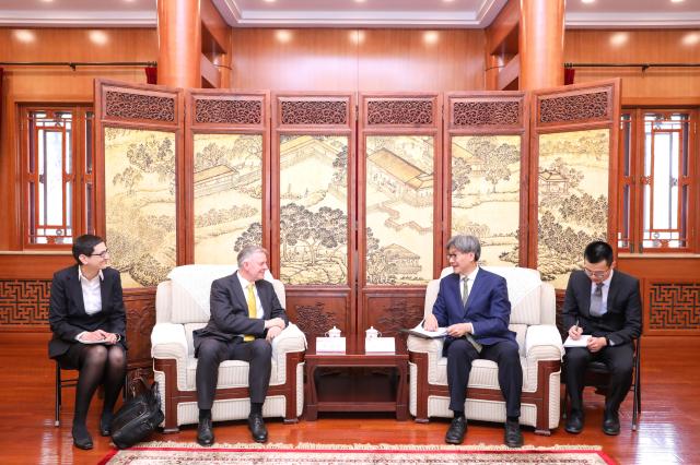 王博欢迎石迪福大使在中奥建交50周年之际来访北大。他表示,北大多年来积极加强奥地利研究并推动对奥人文交流与合作,希望未来进一步拓展北大与奥地利高校的科研合作和人员往来。