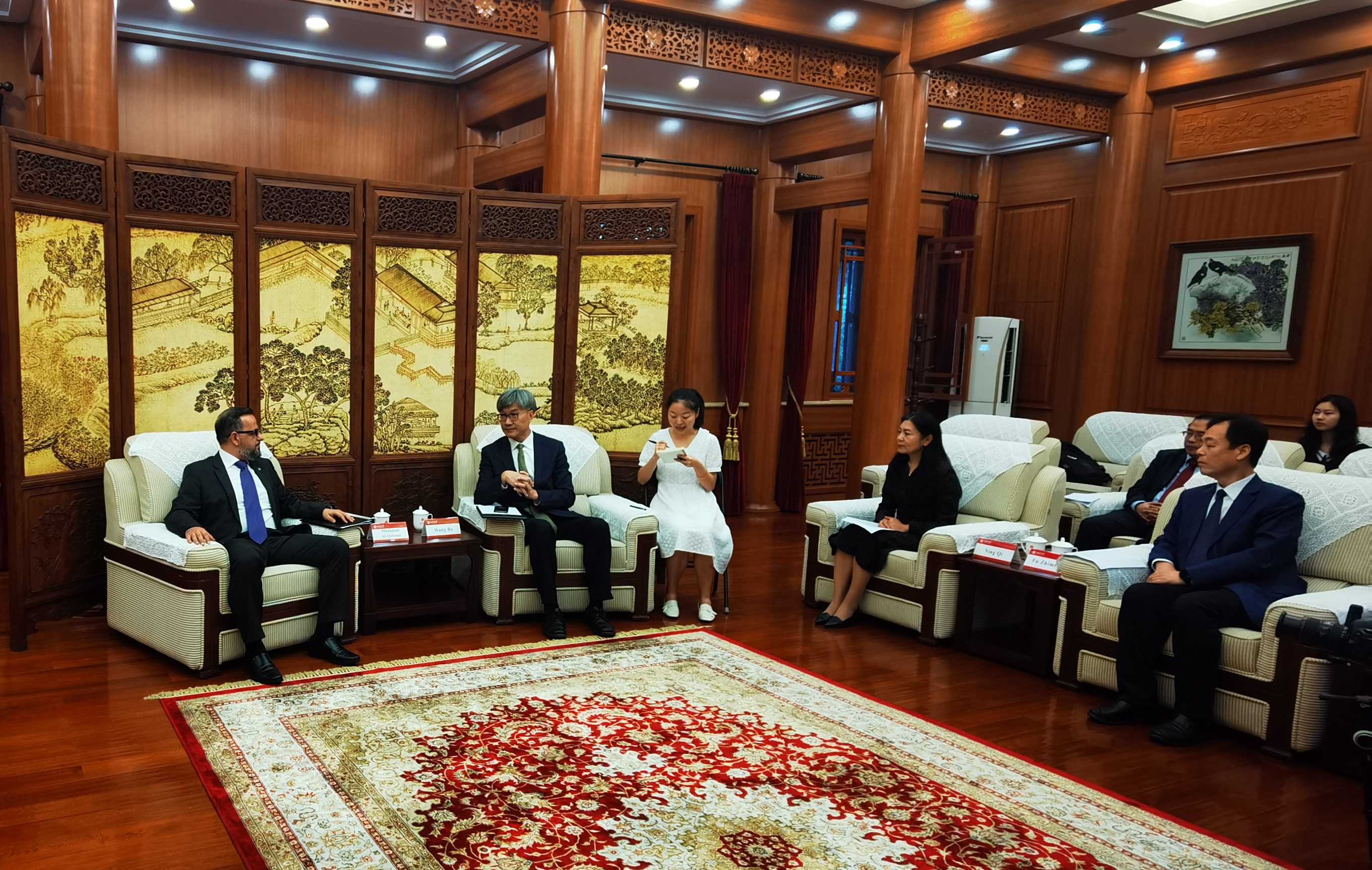 2021年9月15日,沙特阿美亚洲中国区代表团一行访问北大,代表团成员包括阿美亚洲中国区总经理穆沙巴•卡塔尼、阿美亚洲工程技术服务部副总裁穆罕默德•卡塔尼、阿美亚洲下游合资企业发展部副总裁拜德•巴赫曼等十位来宾。北京大学副校长王博、外国语学院院长宁琦、外国语学院副院长付志明、外国语学院阿拉伯语系主任林丰民、副主任吴冰冰、国际合作部副部长周曼丽等在临湖轩会见代表团。