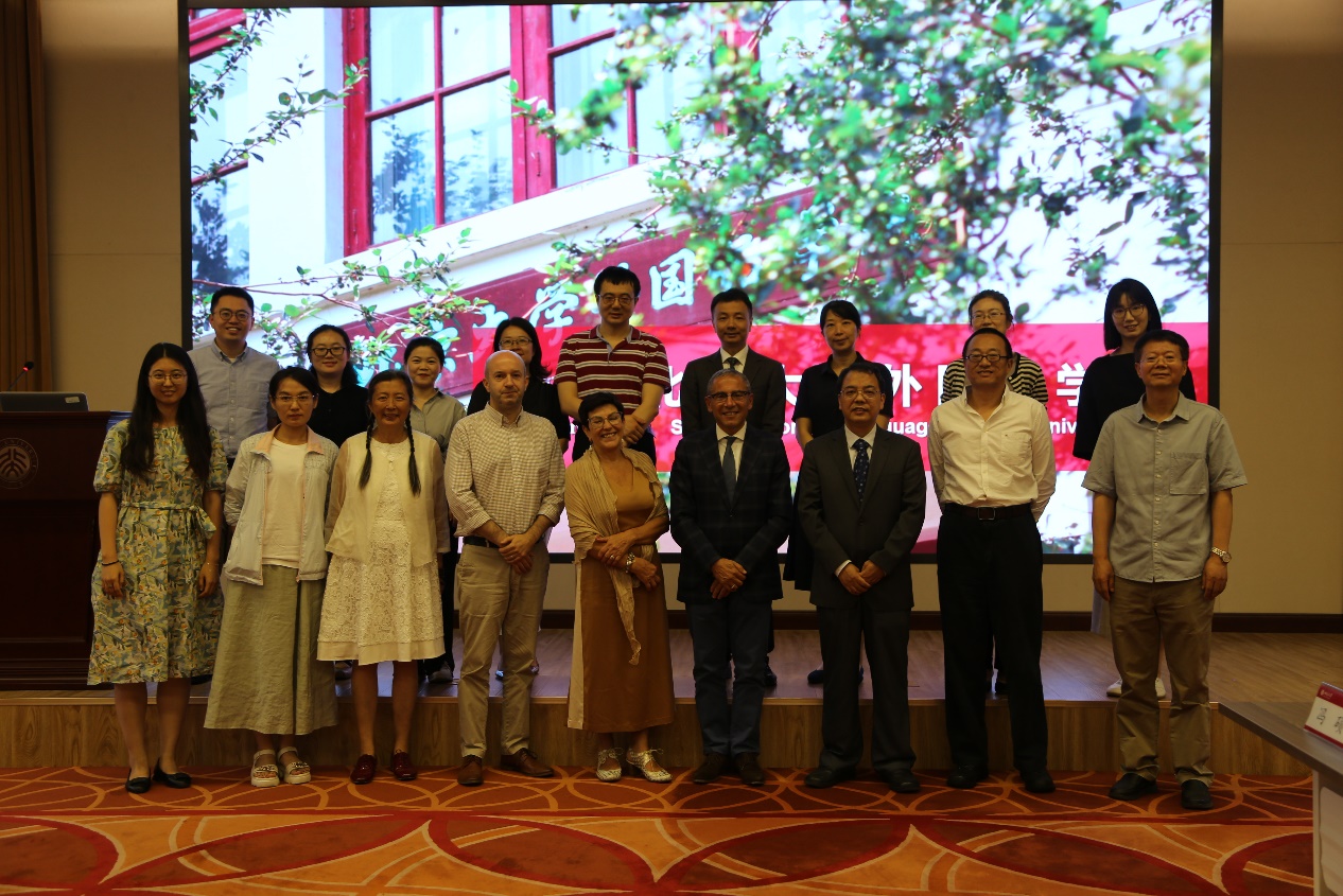 2023年8月23日,法国阿尔多瓦大学校长Pasquale Mammone教授,校长夫人Sylvana Floriduz女士,阿尔多瓦大学文化活动校务专员、文本与文化研究中心跨文化研究室主任金丝燕教授一行来访外国语学院,开展讲座并与学院师生进行学术座谈交流。外国语学院院长陈明教授、副院长吴杰伟教授、法语系师生代表出席此次活动。