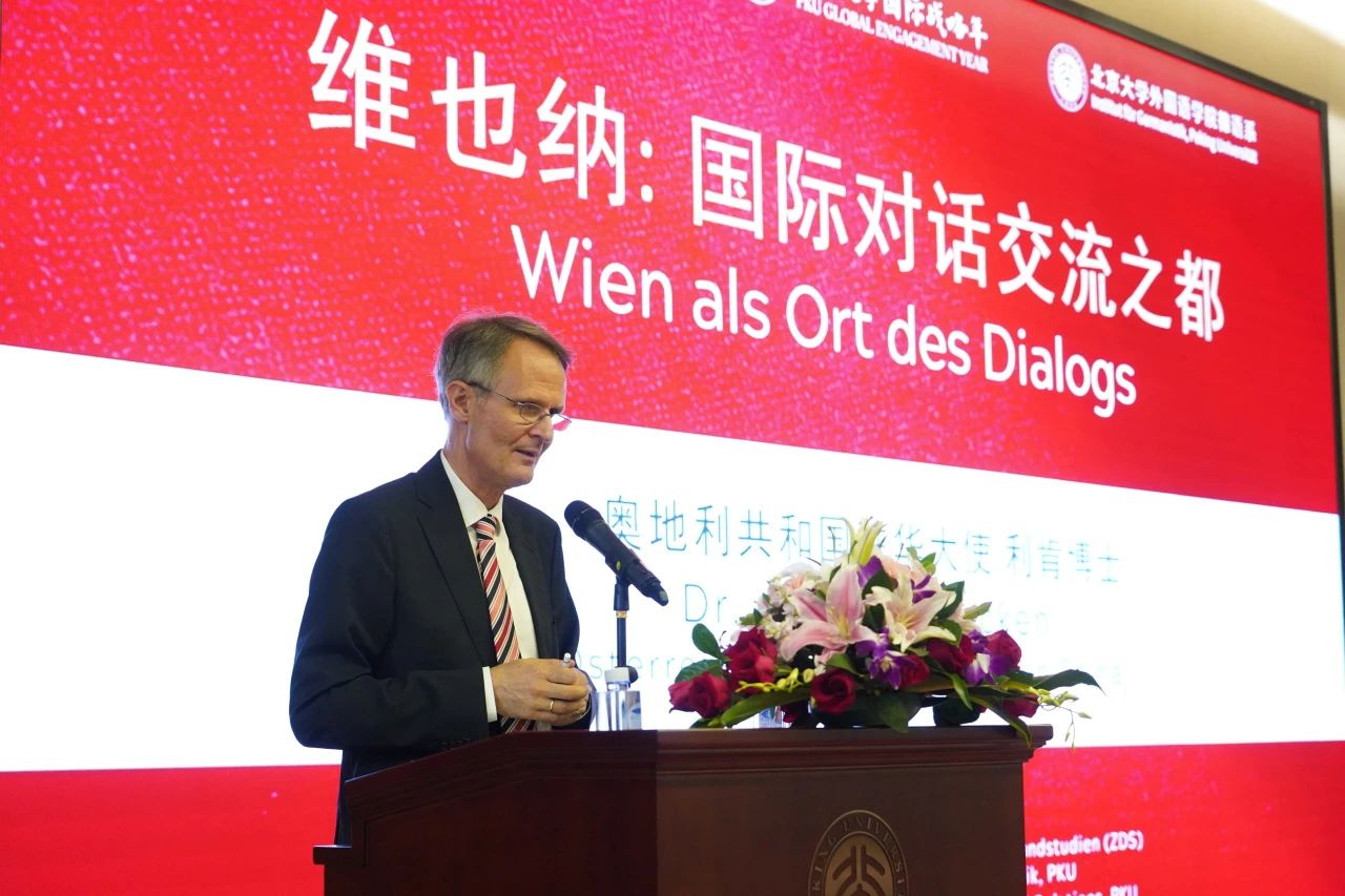 2023年9月26日下午,应北京大学德国研究中心邀请,奥地利驻华大使利肯博士(Dr. Andreas Riecken)到访北京大学,并在外国语学院民主楼208以“维也纳:国际对话交流之都”(Wien als Ort des Dialogs)为题作演讲。活动由北京大学德国研究中心和九州体育德语系共同主办。作为北京大学“国际战略年”系列活动之一,本次活动得到了北京大学国际合作部大力支持。