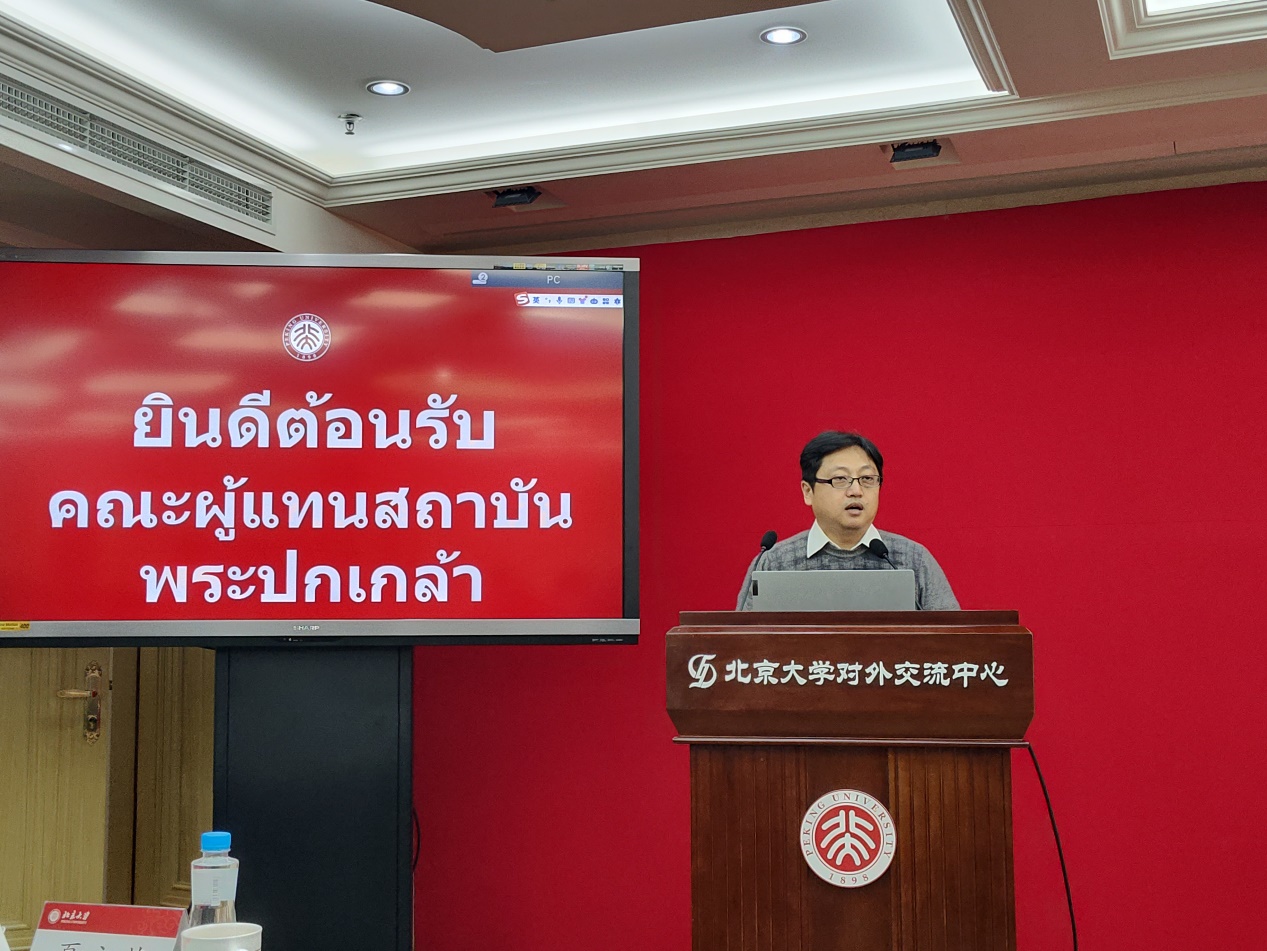 2023年12月4日上午,由泰国现任国会主席兼上议长 波汶萨·乌万诺(Borwornsak Uwanno)率队的泰国七世王学院代表团(King Prajadhipok's Institute)一行到访北京大学,与北京大学泰语专业师生见面交流。此次代表团成员包括泰国上议院议员道诺·素提妮帕攀、上议院议员甘诺·他纳帕帕汶、七世王学院讲师拉汶·措猜,以及来自泰国全国高校的青年学生代表共40余人。中国人民对外友好协会二级巡视员郭宁、中国驻泰使馆政治处主任夏文芳、中国人民对外友好协会东亚部副处长许奕怡陪同来访。北京大学国际合作部陆骄副处长也出席了此次活动。