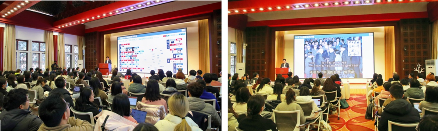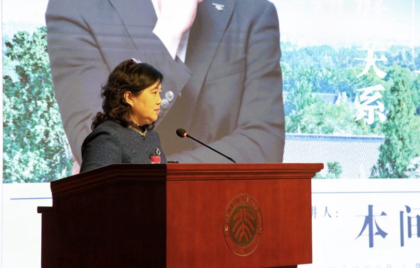外国语学院党委书记李淑静教授致开幕辞。她首先诚挚地欢迎本间哲朗总裁与师生来宾。她表示,中日两国一衣带水,中日关系源远流长,早在1978年邓小平先生访日期间,就与松下公司的创始人松下幸之助先生建立了坚定的信任关系。此后,松下公司不断扩大在华业务,他们的经营理念也得到了中国企业界的认同。本间哲朗先生秉承松下经营理念,并在2019 年赴华任职后对松下在华业务进行了重整和升级,赢得了良好声誉。他多次公开表示,松下公司见证了中国改革开放的伟大成就,是中国改革开放的陪跑者,今后也将继续坚守这一光荣使命。李淑静书记还介绍了外国语学院日语系同学参与松下纪念馆“行商道,顾客为先”——松下幸之助经营理念特别展工作。并表示,这样的合作,不仅让同学们锻炼了翻译能力,也更全面地了解松下的企业文化和精神,让同学们受益良多。