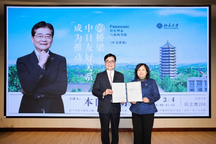 2024年3月4日下午,应外国语学院日语系邀请,松下电器集团代表董事、全球副总裁、中国日本商会会长本间哲朗到访北京大学,并在民主楼208进行“成为推动中日友好关系的桥梁——松下电器的经营理念和我的实践”主题演讲。讲座由外国语学院日语系和北京松下纪念馆共同主办。