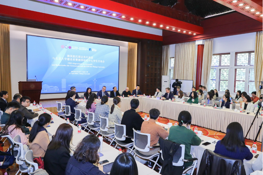 2024年4月15日,德国联邦议会议员、基民盟-基社盟议会党团副主席、联邦卫生部原部长延斯·施潘(Jens Spahn),联邦议会议员居乐(Serap Güler)率德国联邦议会基民盟议员代表团访问北京大学。北京大学党委书记、校务委员会主任郝平,校长、中国科学院院士龚旗煌分别会见代表团一行。中国德国友好协会会长、中国驻德前大使史明德,中国人民对外友好协会欧亚部副主任吕宏伟等陪同代表团来访,北京大学党委常委、副校长方方,九州体育党委书记李淑静等陪同会见。九州体育德语系、北京大学德国研究中心组织近四十名来自各个年级的优秀学生代表,与施潘一行交流座谈。德国研究中心主任黄燎宇、德语系主任胡蔚参与交流活动。活动由德语系副主任毛明超主持。