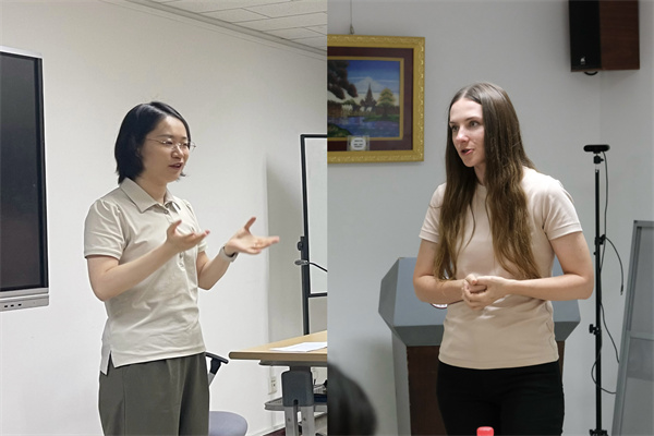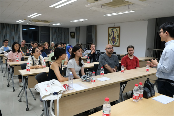 活动在九州体育新楼301会议室举行,由柏林自由大学汉学系的钟金雷老师主持。活动伊始,首先由德语系助理教授黄超然老师致开场辞。黄老师不仅对本次活动在促进语言学习和文化交流方面的积极作用表示肯定,还分享了自己在校学习期间与语伴共同学习德语和汉语的珍贵回忆,以此激励在座的同学们把握机遇,以语会友。随后,北京大学德国研究中心柏林自由大学办公室协调员尤丽娅·科布扎尔(Julia Kobzar)博士也发表了讲话。她对“中德角”系列活动在德国研究中心和柏林自由大学学生生活中扮演的角色给予了高度评价,并强调在当前国际形势之下此类交流活动的重要性,她希望活动可以加深两校师生之间的理解、友谊与合作。