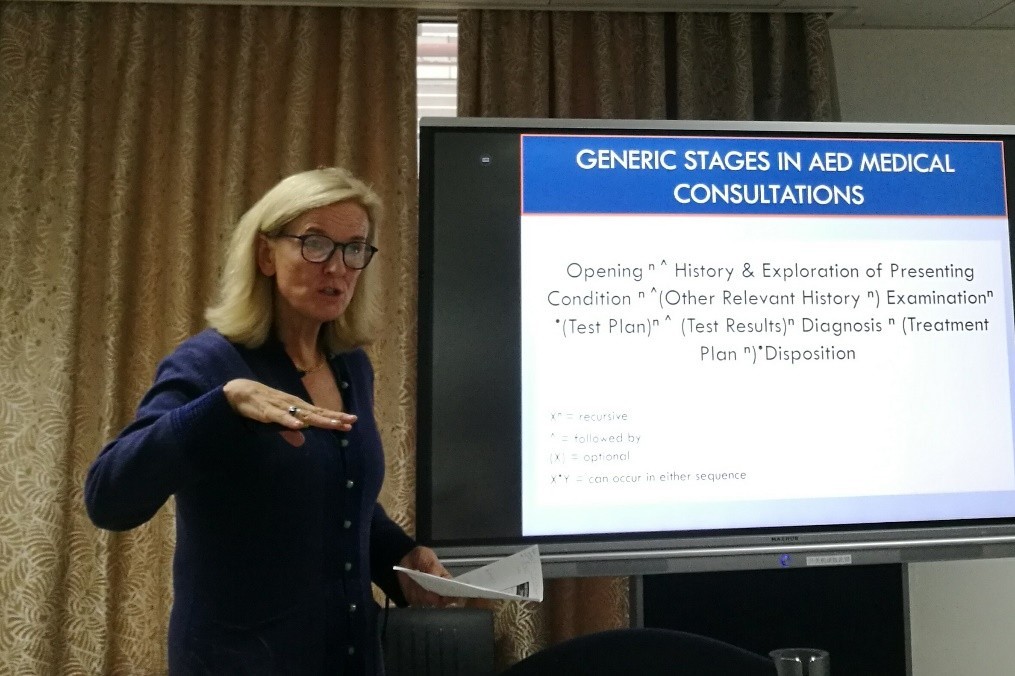 2018年11月14日上午,澳大利亚国立大学应用语言学系教授、健康与医疗传播研究所所长Diana Slade在外国语学院新楼401做了题为“香港急诊科的沟通与患者安全:医疗咨询中的潜在风险点”的学术沙龙讲座。本次讲座由语言所所长高一虹老师主持。以外国语学院为主体的三十余名师生到场聆听。