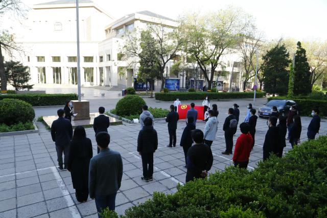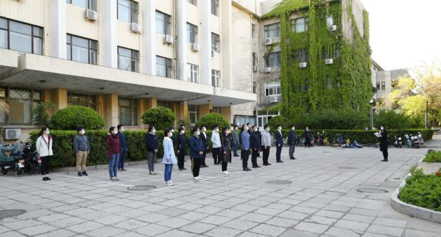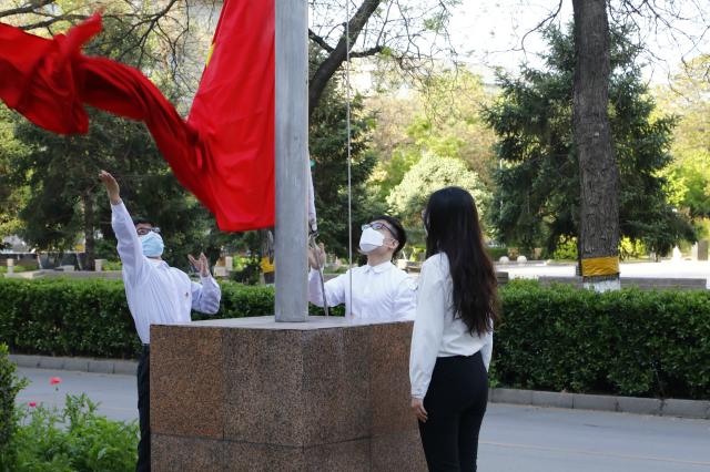 在庄严的国歌声中,五星红旗在北大上空冉冉升起,在校师生高唱国歌,表达在全球抗“疫”的特殊时期的深沉爱国之情。艺术学院博士生王志、考古文博学院博士生张天宇、外国语学院本科生孙池担任此次活动的升旗手和护旗手。