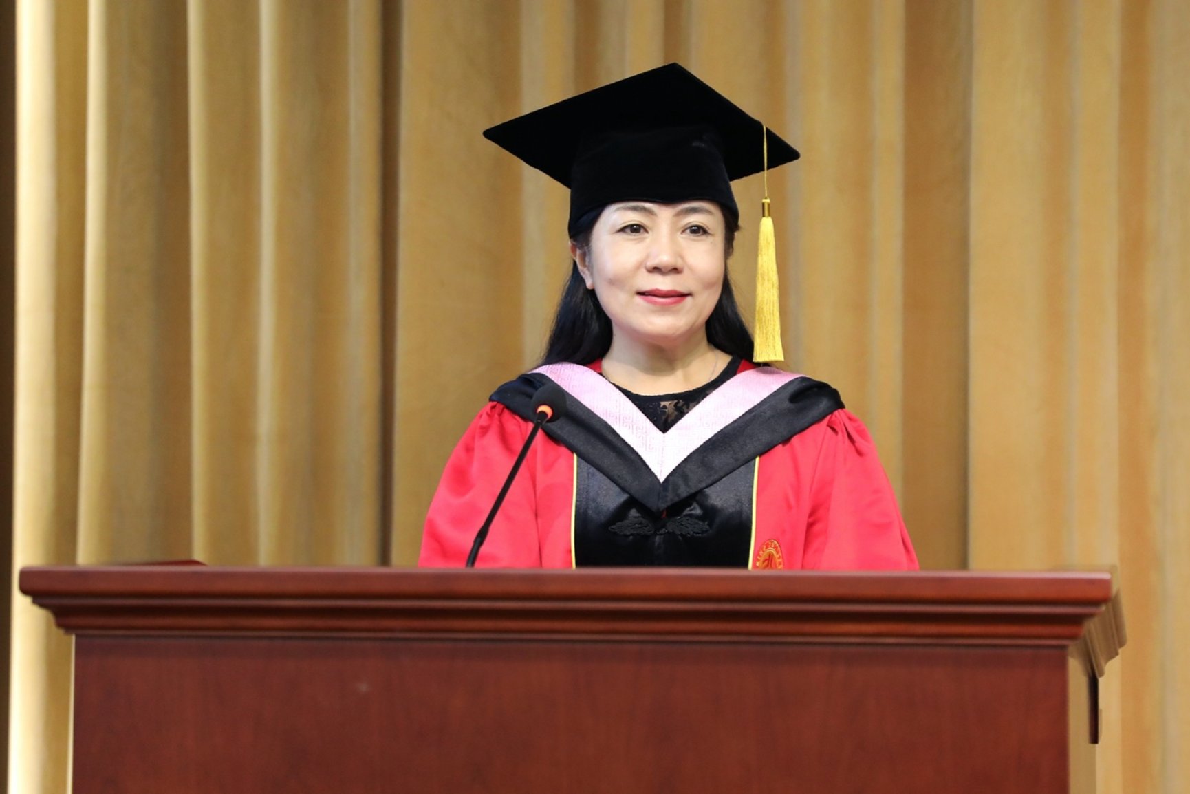 临别之际,师长赠言,院长宁琦以“心有阳光,无惧风雨”为主题为2020届毕业生送上寄语。宁琦首先向全体毕业生表示热烈的祝贺,肯定了外院师生在疫情期间展现出的担当意识和北大精神。她讲述了外院学子参与防疫志愿服务,师生合力翻译抗疫指南、传递抗疫经验的故事,回忆了疫情期间教学、科研和行政各个岗位上的外院教职工的辛勤付出,鼓励毕业生战胜恐惧继续前行,无论顺境还是逆境,都通过奋斗缔造闪亮人生。宁琦指出,希望各位毕业生长存明辨是非的理性精神,永葆热爱祖国的赤子之心,胸怀包容开放的大同理想,追求真理,践行爱国主义,涵育家国情怀,搭建中外沟通的桥梁,胸怀光明与希望,以努力、毅力、决心和勇气创造美好未来。最后,宁琦欢迎毕业生在今后的每一个海棠花季重返燕园,祝大家毕业快乐、前程似锦。
