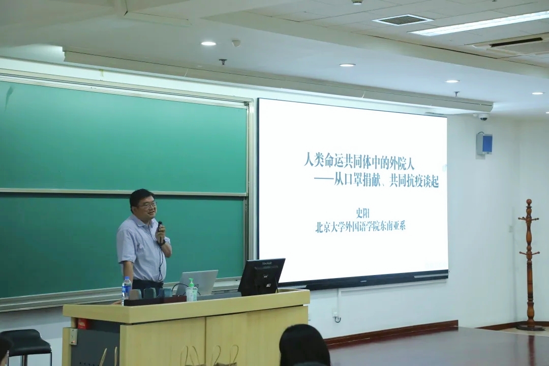 “东西文化中的外院人”专题讲座由东南亚系史阳老师和南亚系王旭老师主讲。他们讲述了外院人在人类命运共同体建设中的独特贡献,分享了支援国外建设、翻译抗疫文献等先进事迹。