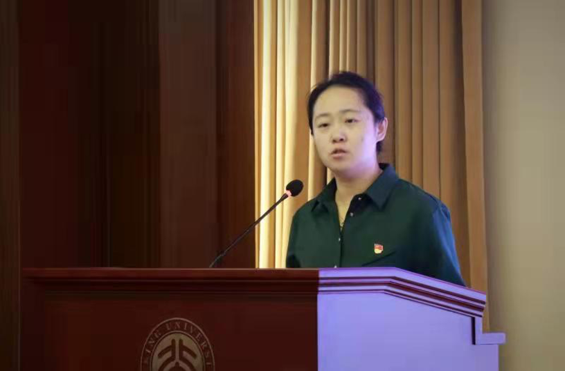 李淑静老师为同学们送上了师长的嘱托。她首先感谢校团委对外院团学工作的大力支持,并对上一学年外院团校的工作给予了充分肯定。她向同学们提出了三点希望:一是热爱祖国、坚定理想,她结合自身三次参与国庆游行的经历以及疫情期间外院师生、校友的辛勤工作和突出贡献,带大家体悟了“爱国是立德之源、立功之本”的深切内涵;二是外语学习需要不断磨练,她期待同学们做到勤学笃实、求真力行,利用综合性资源和实践机会,积极学习有利于国家发展的知识技能;三是希望大家团结奋进、守望互助,在团校学习中广结益友,提升集体凝聚力,带动青年们奋发向上。