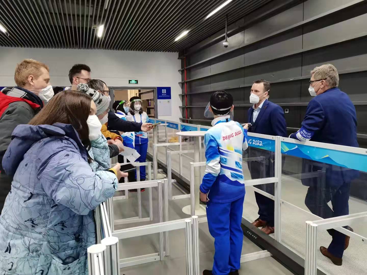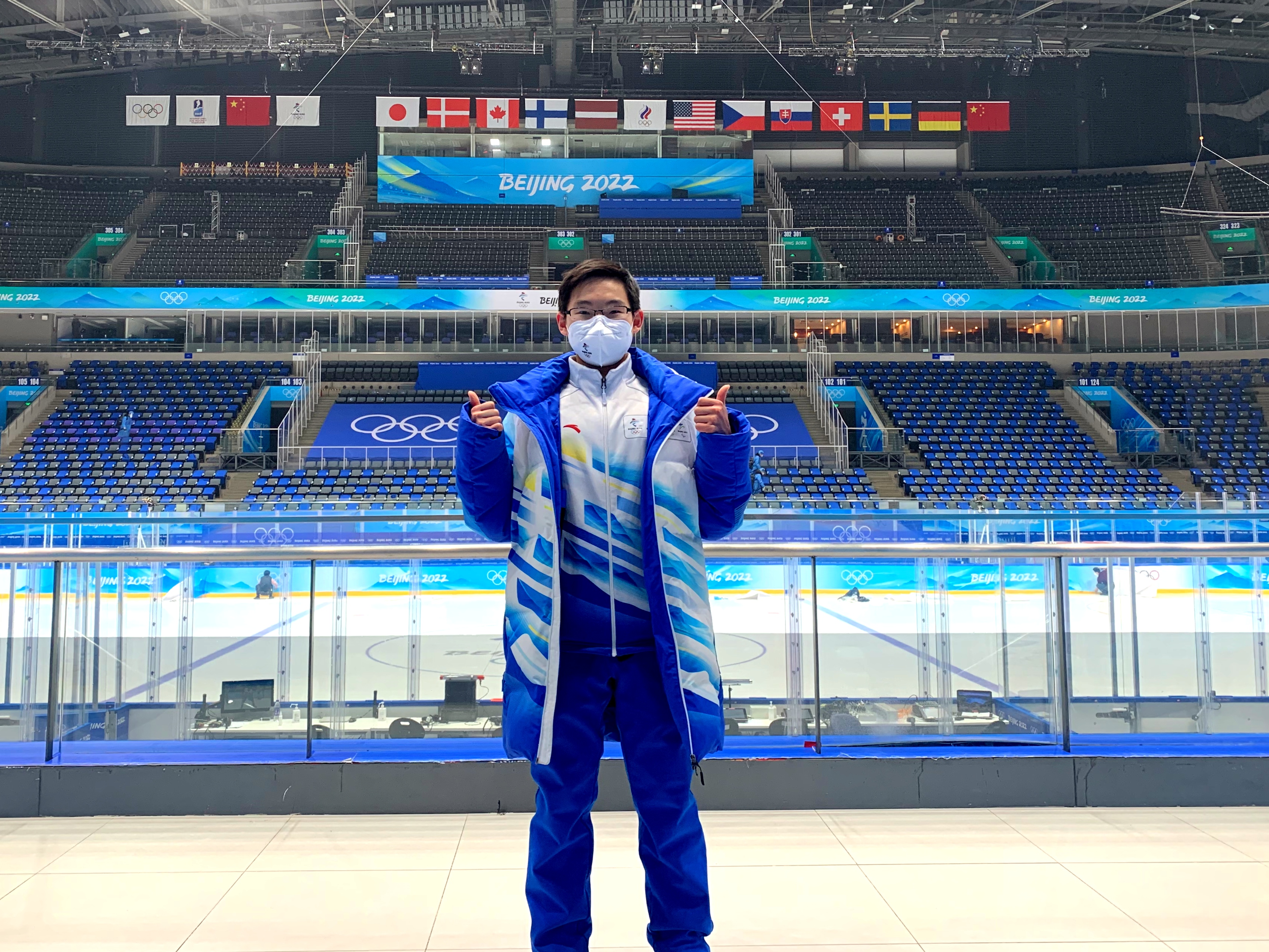 惠晨原同学:我是新闻混合区助理。混合区是运动员下场回到更衣室前经过的通道。通道中有防疫围栏,运动员和记者分站两边。混合区分为两段:电视转播商和文字记者采访,我服务的是后者。记者进到混合区之前需要验证身份,之后我们会询问想要采访的对象、与主管及运动员一侧的工作人员交接(他们负责邀请采访对象)。混合区最重要的工作是采访时站在两米的防疫围栏中间帮记者递录音笔。混合区整体上运行节奏比较快。每个比赛快要结束时,记者们就会飞似的从看台跑下来准备采访,这时候我们的工作开始;一直到最后一位记者离开,这场比赛的工作才算正式结束。