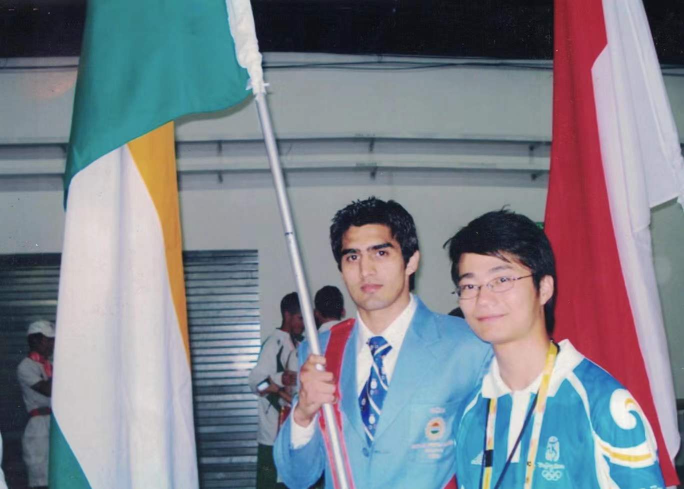 张忞煜老师参加奥运会闭幕式时和印度代表团旗手的合影