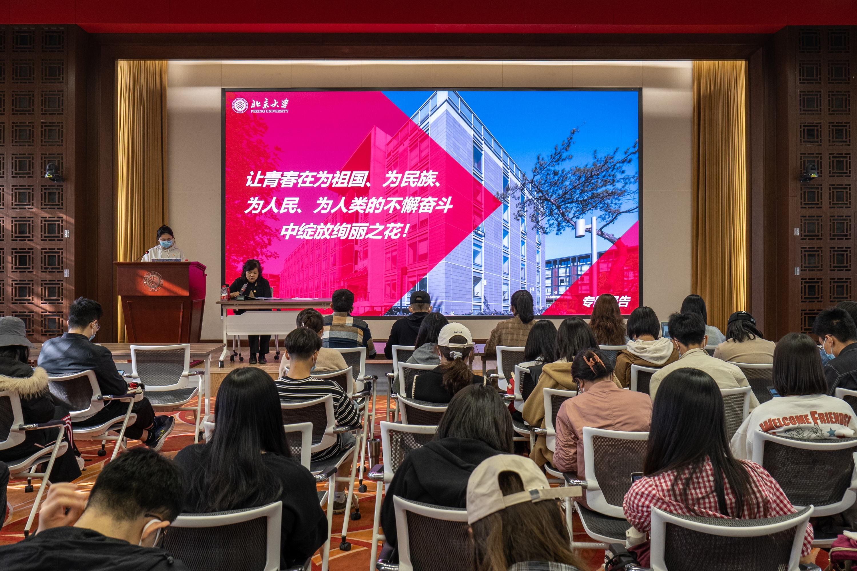 北京大学是中国马克思主义的发祥地,是中国共产党早期活动基地,是最早进行马克思主义理论教育的大学。北大始终与国家和民族的命运紧密相连,前有李大钊、王复生、范鸿劼等人为党和国家的发展作出重要贡献,今有樊锦诗、屠呦呦、钟南山等人鞠躬尽瘁,献身科研。在接下来的党课中,李老师通过讲述同学们身边的党员榜样故事来诠释优秀共产党员应有的特质。见证了祖国崛起、民族复兴的外国语学院英语专业教授胡壮麟老师,三登鸟巢舞台的翩翩舞者、体育教研部秦朗老师,园子里的“雪燕”、用文字书写冬奥志愿服务的外院多语种冬奥稿件翻译团队……他们都以坚定的理想信念坚守初心和使命,展现出了知行合一的优秀共产党员形象,鲜活的事例无不激励着同学们践行新时代青年的责任与担当,在组织、思想和行动上同步入党。