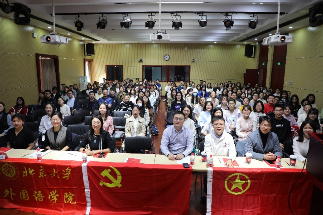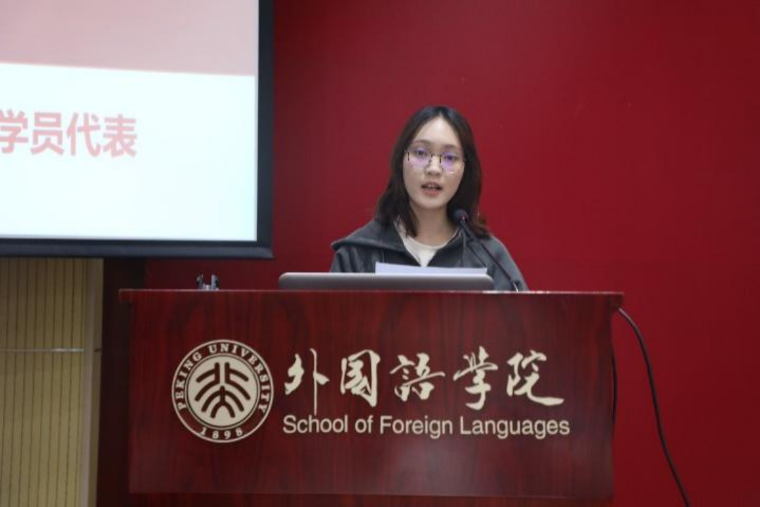 首先,校团委副书记、光华管理学院党委副书记鞠晓致辞。他代表校团委对外国语学院新学年团校顺利开学表示祝贺,并对外院党团建设工作表示了肯定。他表示,团校是团干部和青年人才成长的摇篮,共青团工作的重要参谋部和思想库。他对团校新学员们提出了三点希望:一是传承红色基因,把牢爱党爱国的指南针。他回顾了外院的前身—京师同文馆的创建初衷,号召同学们将个人理想融入党和国家的事业当中。二是胸怀两个大局,找准时代发展的定位仪。他提到,目前国家发展面临一系列机遇与挑战,需要青年洞悉发展潮流、顺势而为。三是坚持知行合一,用好实践探索的助推器。他表示,团校学员们既要读好理论这本有字之书,也要读好实践这本无字之书,在接下来的学习和成长中,创新实践,积极探索。