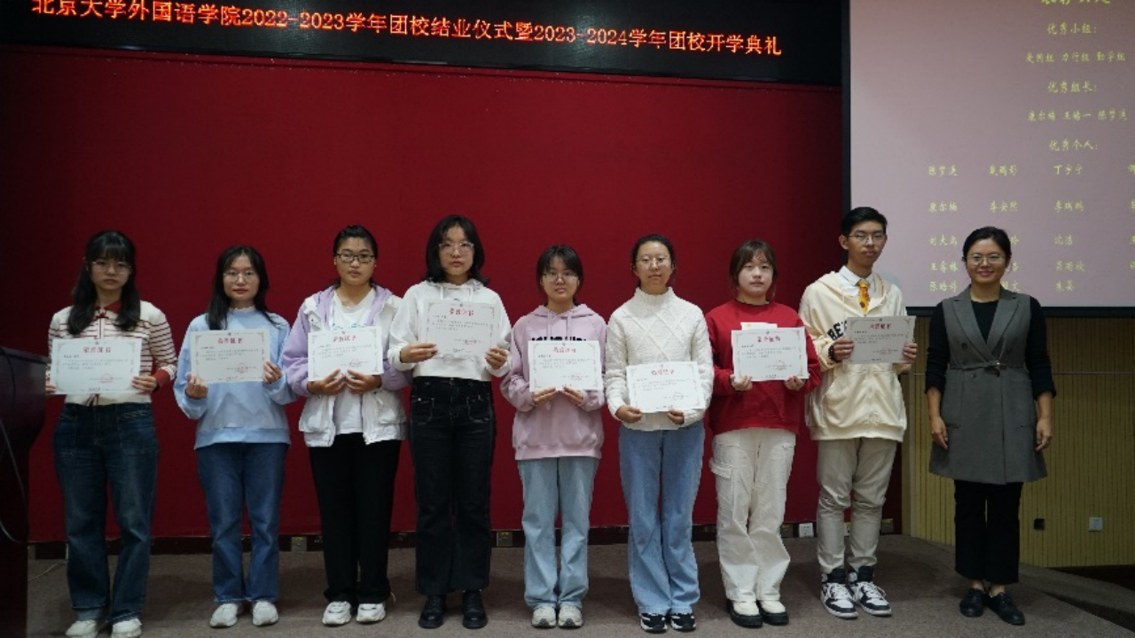 10月14日上午,外国语学院2022-2023学年团校结业仪式暨2023-2024学年团校开学典礼在外院新楼501举行。院党委书记李淑静,校团委副书记、光华管理学院党委副书记鞠晓,校工会副主席、第二班主任田越,国际合作部专家与境外办学办公室副主任、第二班主任宋亚男,院团委书记伍昕钰,团委副书记李欣雨等受邀出席。170名团校新生及20余名上届团校优秀集体和个人代表共同参加活动。活动由2022级本科生任达主持。