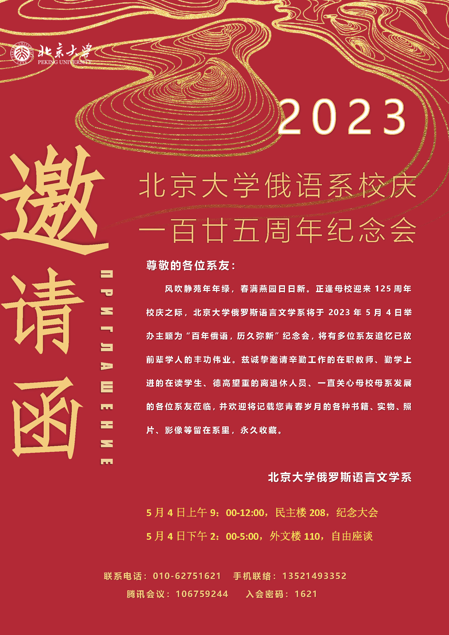 北京大学俄语系校庆 一百廿五周年纪念会邀请函