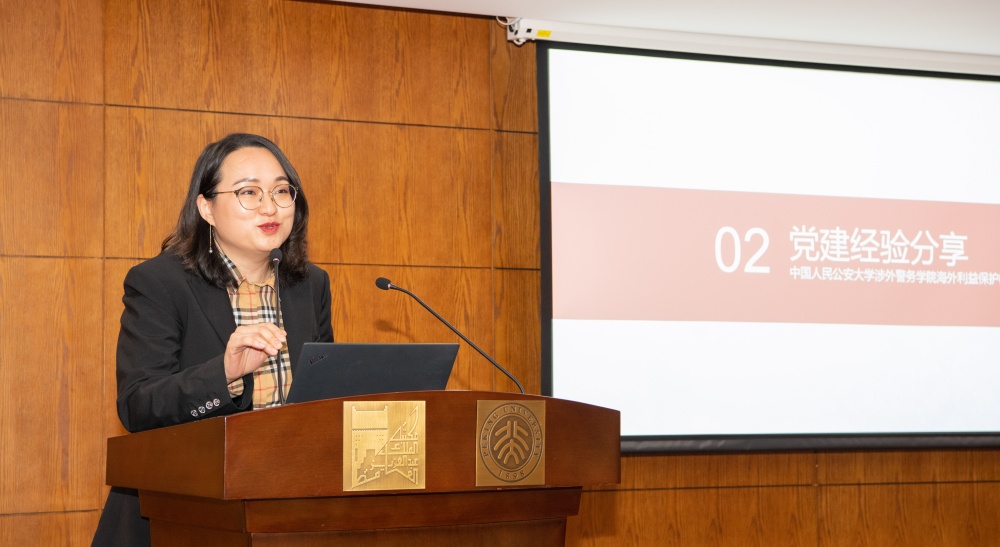外国语学院副院长付志明以"党建引领强国行,立德精业践初心"为主题,介绍了阿拉伯语系"双带头人"教工党支部在党建与学术工作融合方面的经验。中国人民公安大学涉外警务学院海外利益保护教研室党支部书记张钰分享了将党建工作与公安特色活动、职责义务和学术研究相结合的三大特色。北京大学图书馆古籍中心党支部组织委员和利南介绍了支部创新学习形式和开展共建活动的经验做法。中国人民公安大学涉外警务学院2023级团支部书记唐翌哲、北大外院阿语研究生党支部书记许政哲分别就团组织建设和党建与专业学习融合的创新路径进行了分享。