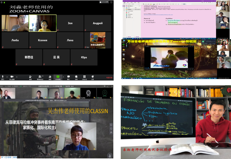 外国语学院有外籍教师41人,多位外教和外聘教师因疫情限制无法返京,在海外各地与北京有时差。学院积极联络外籍教师,为承担46门本科生课程、17门研究生课程的外教和外聘教师开通了教学网帐号,使得身处海外的外籍教师能够在国内助教的配合下正常教学。