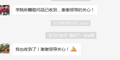 离退休老师通过微信表达对学院的感谢