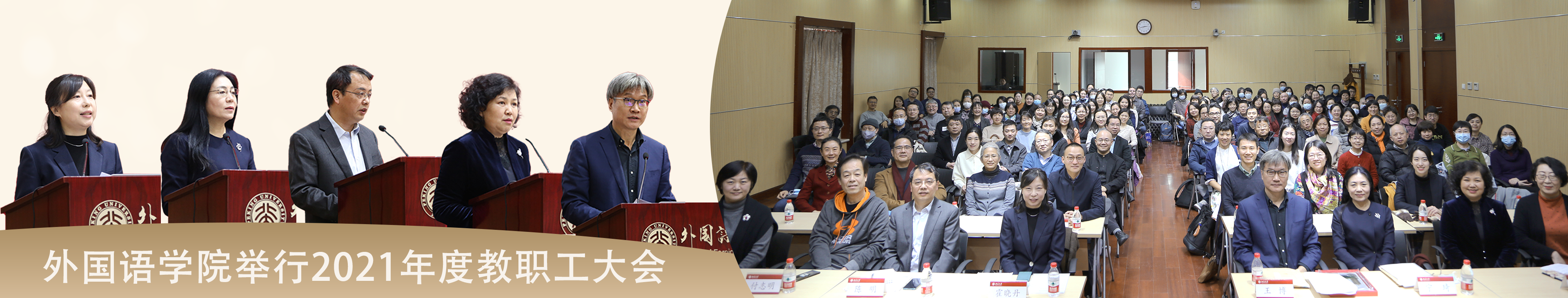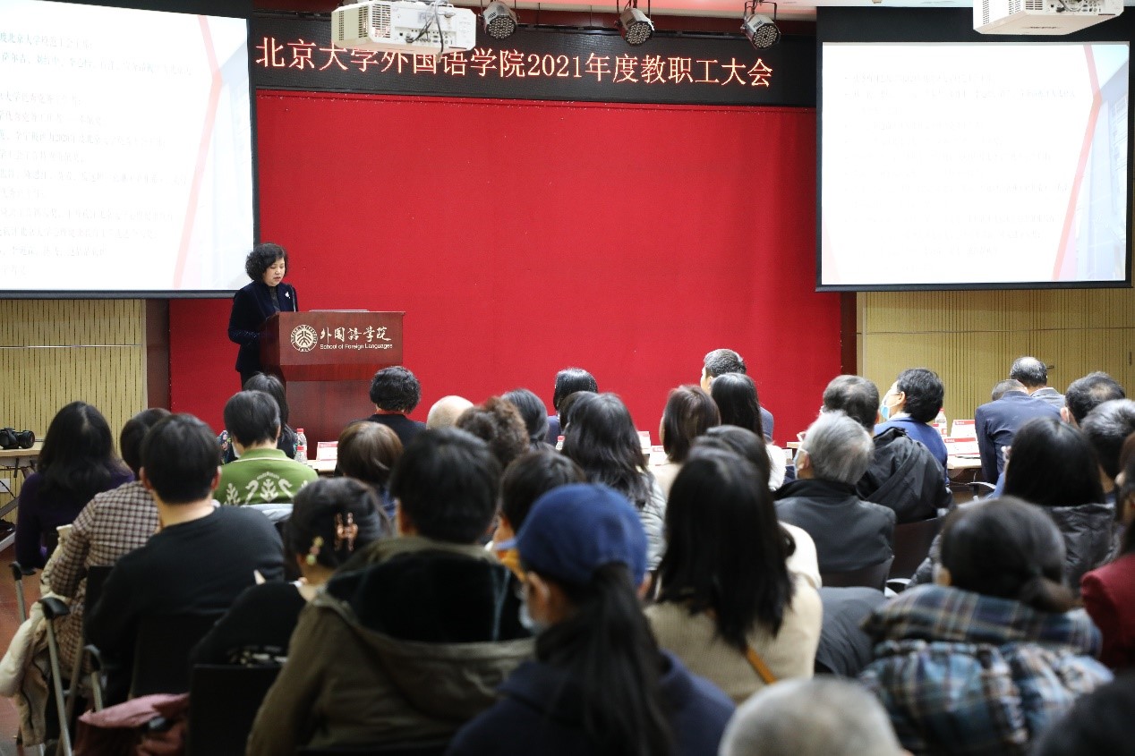 2021年12月31日,外国语学院在新楼501多功能厅举行教职工大会。北京大学副校长王博、党委组织部常务副部长霍晓丹、外院党政班子成员及教职工等百余人参加。会议由外院党委书记李淑静主持。