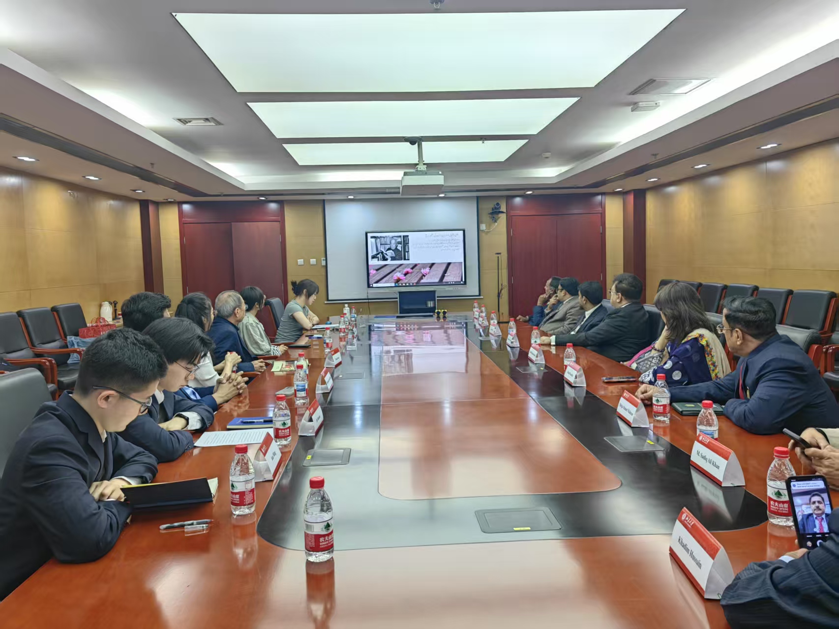 会议伊始,座谈会主持人张亚冰博士代表乌尔都语专业对巴基斯坦代表团的到访表达诚挚欢迎。乌尔都语专业硕士研究生代表岑偲仪、本科生代表金云豪和简明,先后用流利的乌尔都语向访问团扼要介绍了北京大学南亚学系及乌尔都语专业的历史与特色,并分享了中国大学生对教育体系的了解。